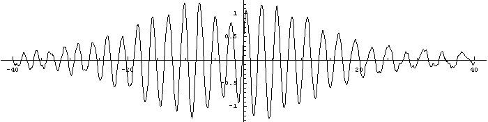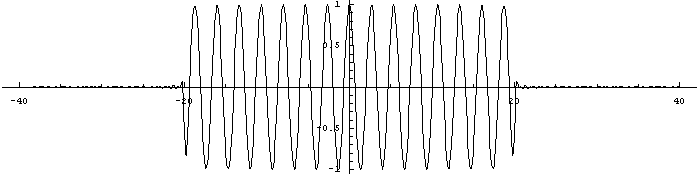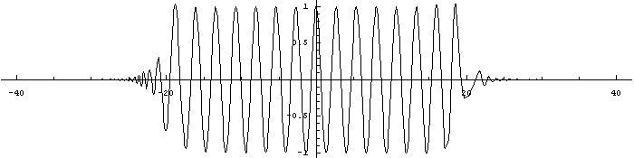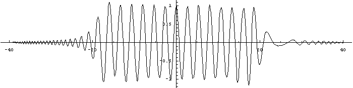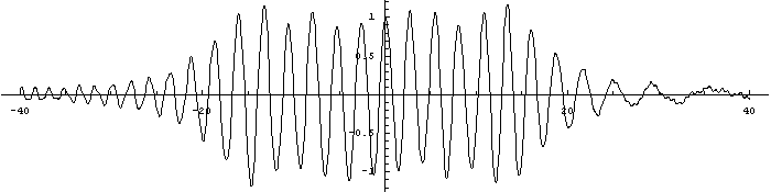 Zobaczmy co się stanie, jeśli weźmiemy światło o długośći fali 800nm (czyli częstości 2.351/fs) i wytnijmy z niego odcinek o o szasie trwania 40fs, a następnie przepuścimy przez kwarc: